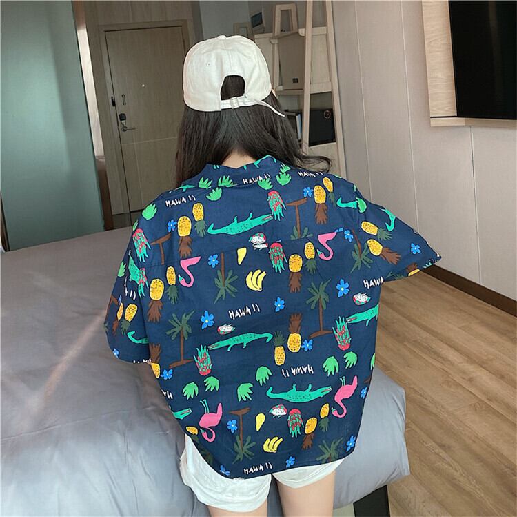 カジュアル ゆったり 快適 可愛い 子供のような 果物 プリント 半袖 シャツ