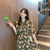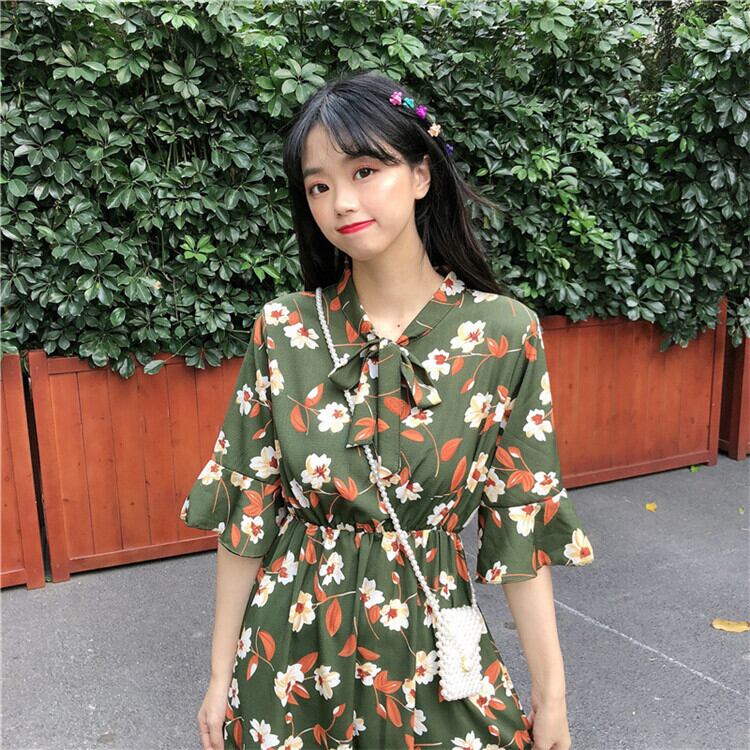 花柄ワンピ 蝶結び 学生 sweet系 百掛け 気質 上品映え