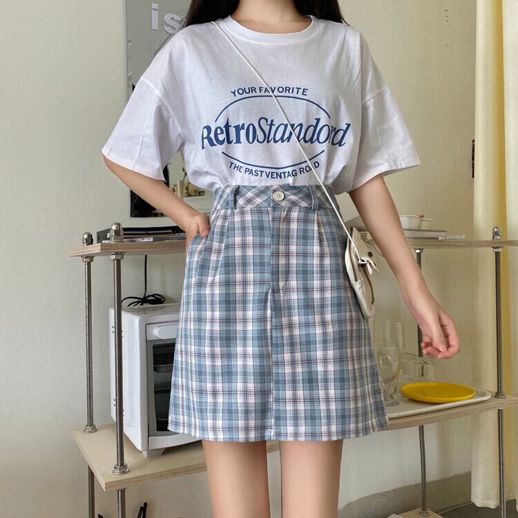 レディース サマー ニュースタイル Aライン ハイウエスト スリミング 格子縞 スカート