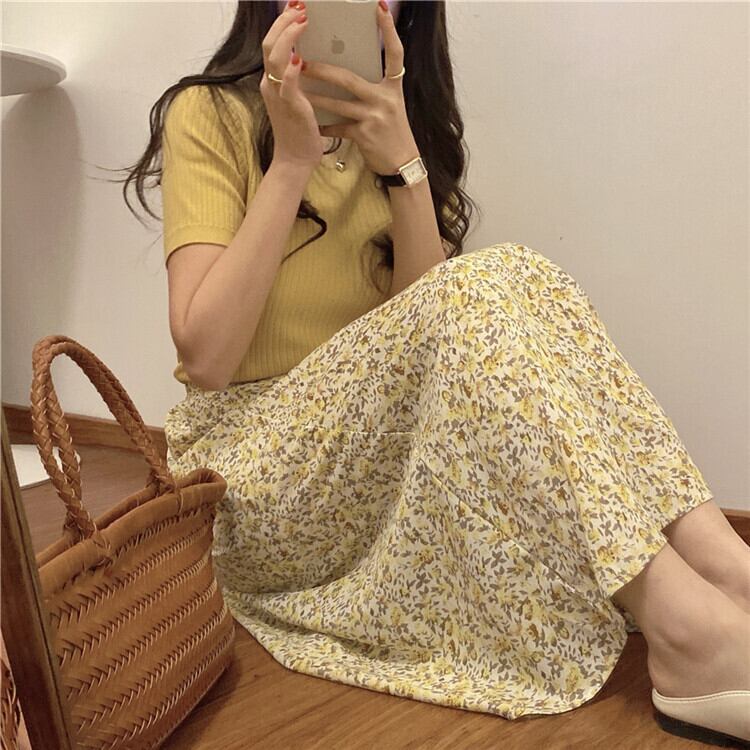 フローラル シフォン スカート レディース 新作 中・長セクション Aラインスカート