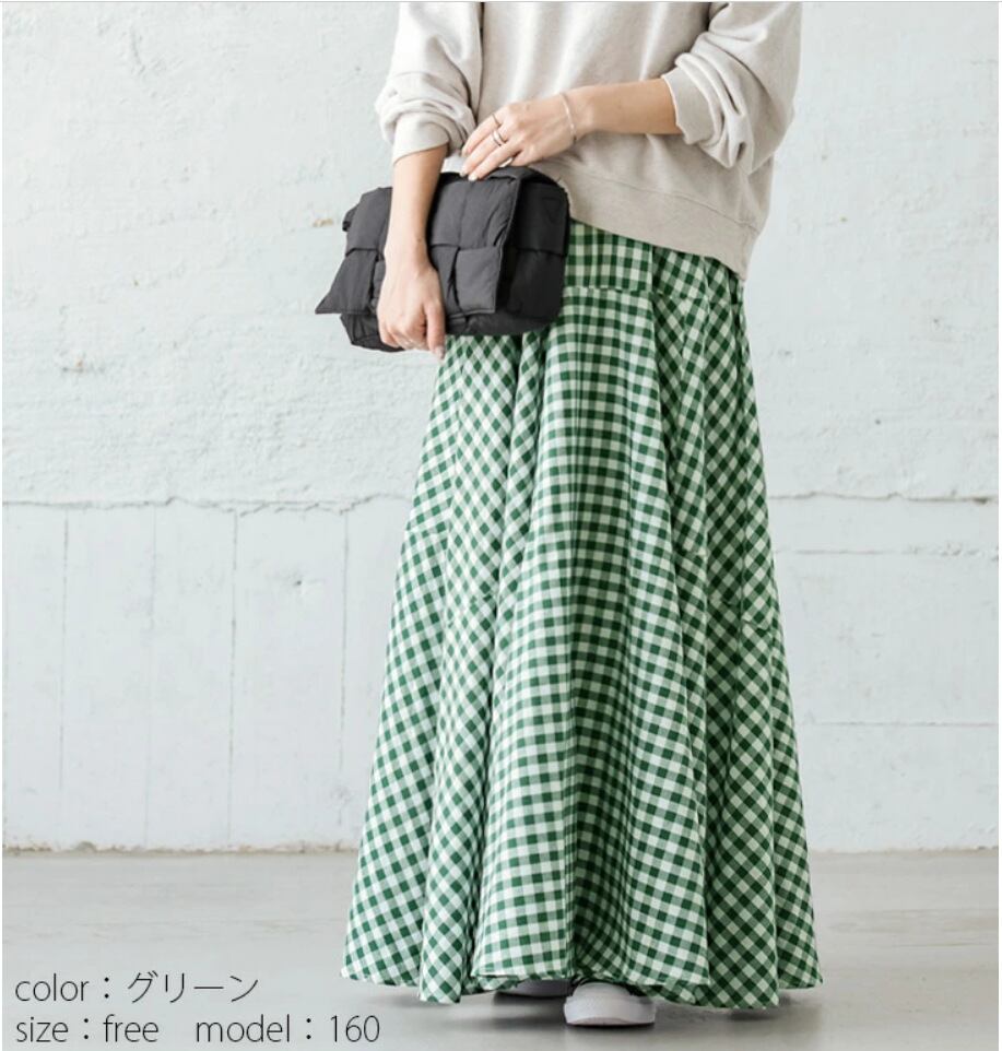 チェック柄 ロング丈スカート スカート 全6色 ウェストゴム フレア レディース おしゃれ