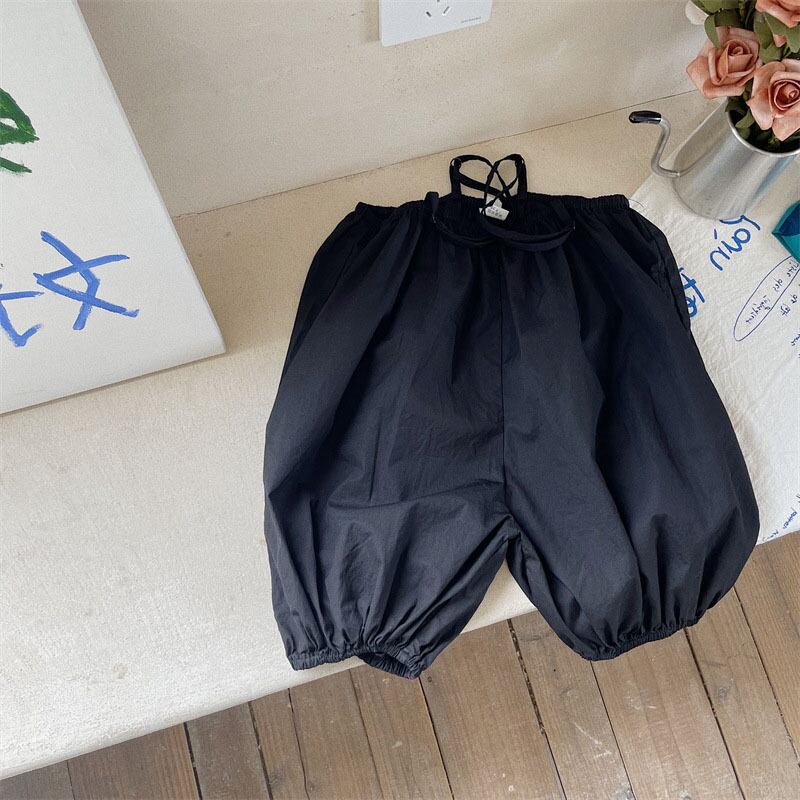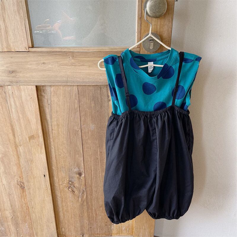 キッズ 韓国風子供服 袖なし上着 女の子 ドット柄 ワイドパンツ シャツ+サロペット7-15