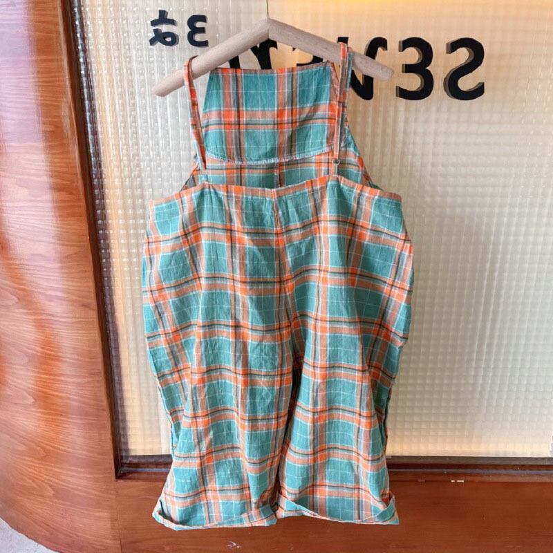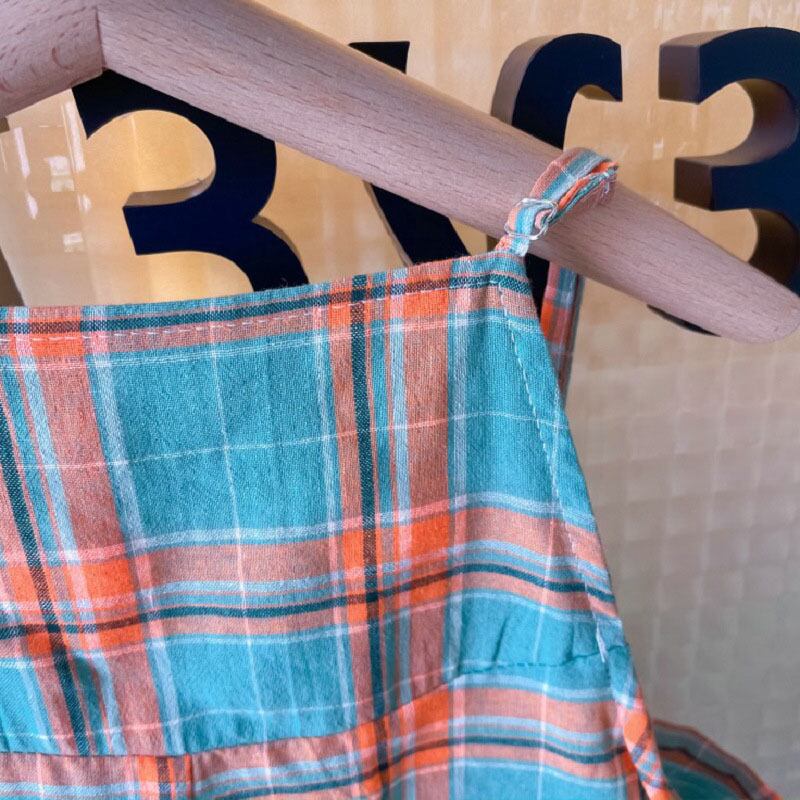 キッズ チェック柄 ガウチョパンツ オールインワン 7-15