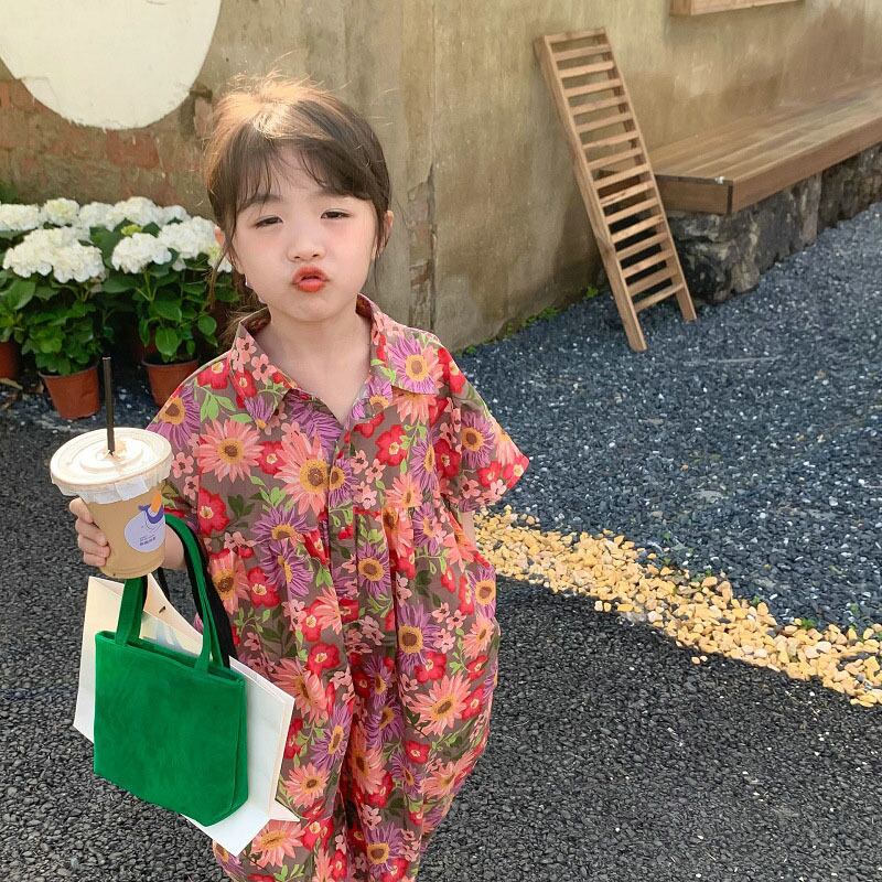 キッズ 花柄 ガウチョパンツ オールインワン 7-15