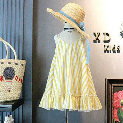 キッズ ストライプ柄 キャミソールワンピ 袖なしワンピース 7-15