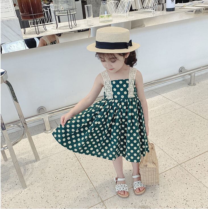 キッズ 2色 刺繍レース ドット柄 キャミワンピ ワンピース 7-15