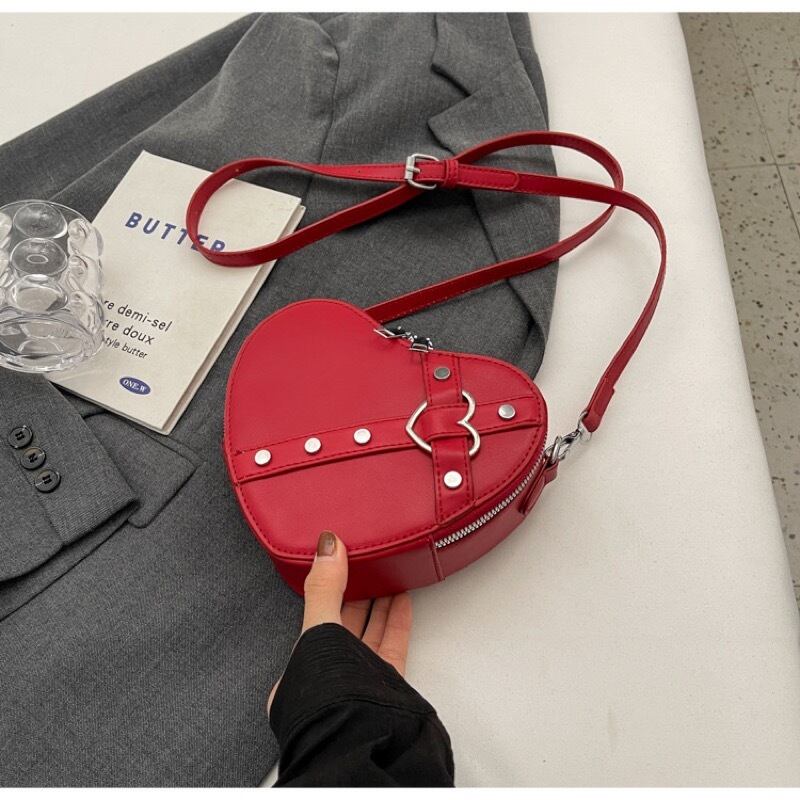 ショルダーバッグ 4色 ハート ハンドバッグ 斜めがけ フェイクレザー レディースバッグ