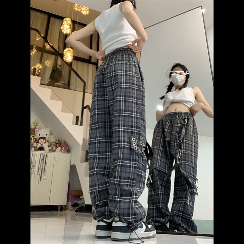 パンツ ボトムス ハイウエスト ストレート スラックス チェック柄 格子柄 レディース