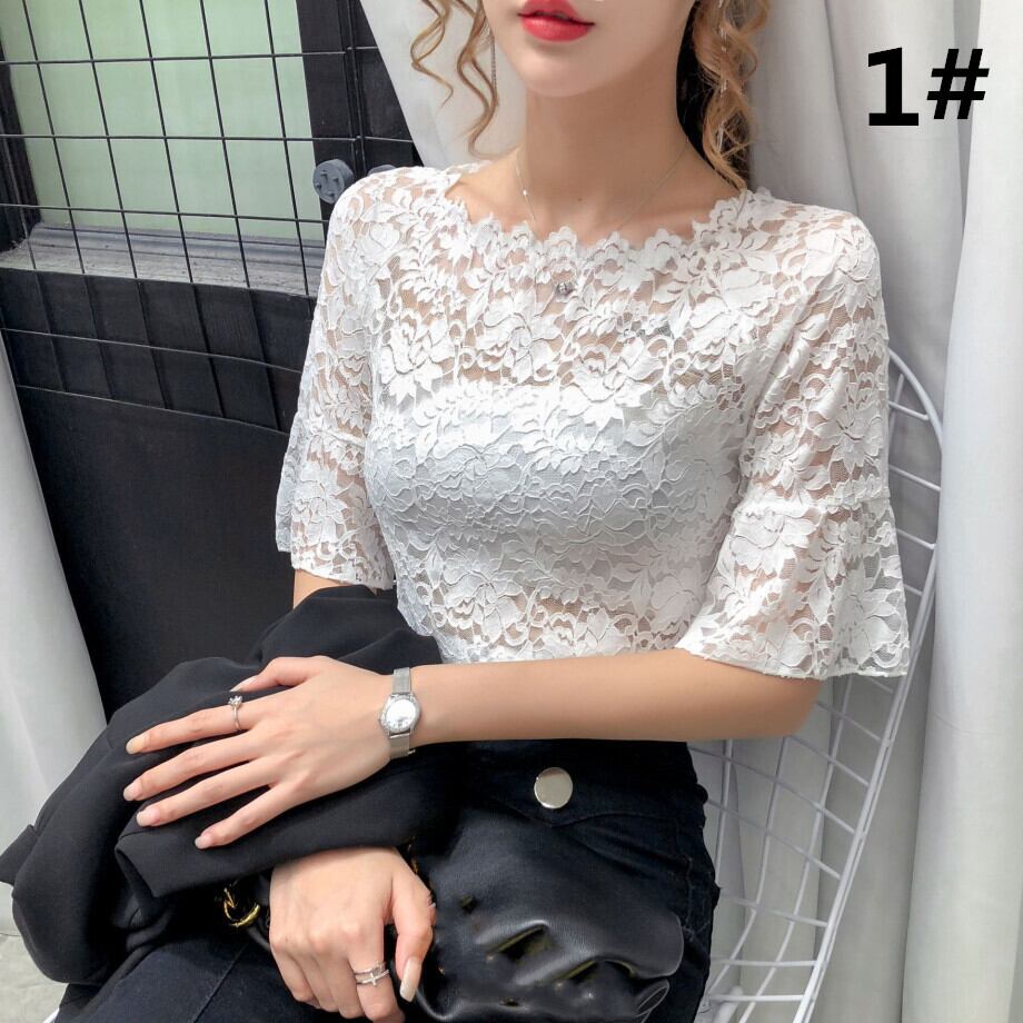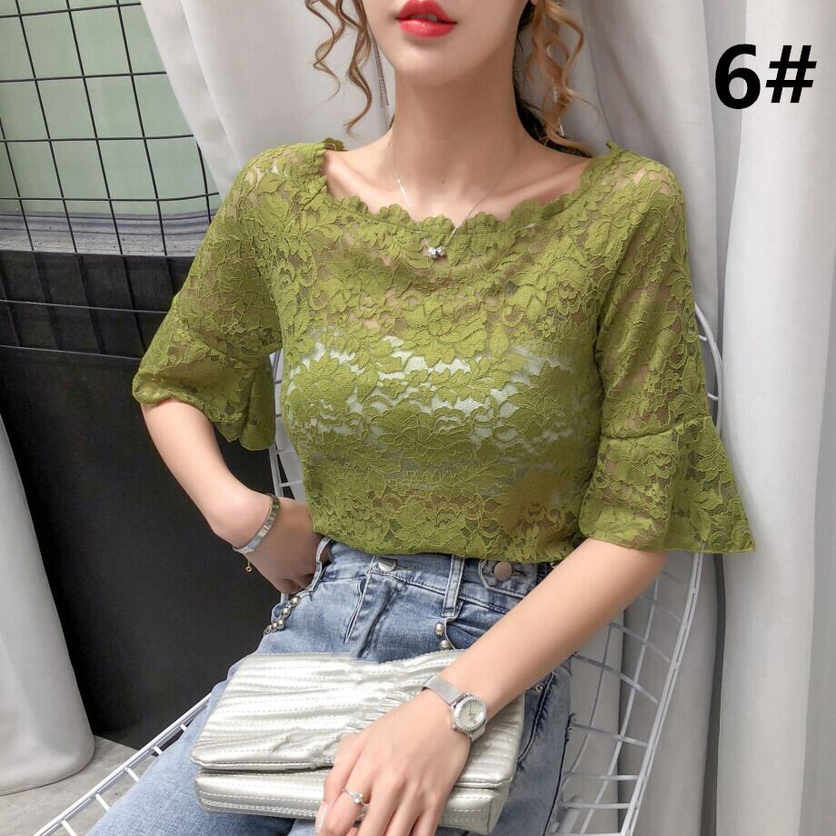 2024年夏新作 ブラウス レディース トップス 総レース フレアスリーブ 気質 肌見せ 花柄レース