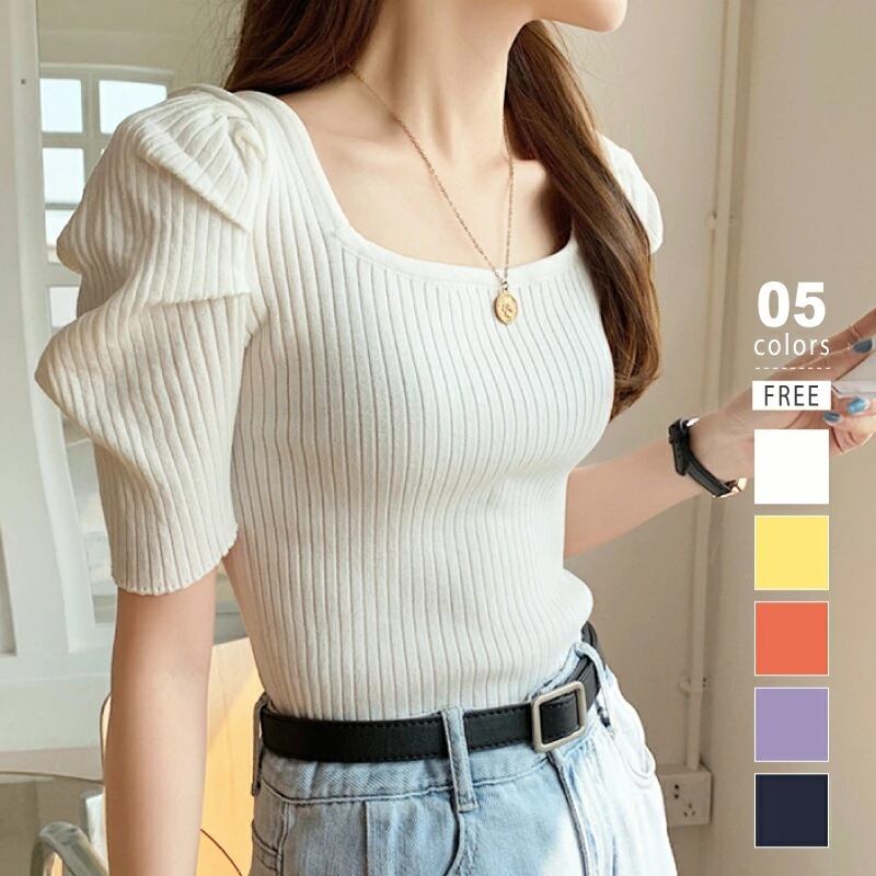 ニットトップス 5色 ラウンドネック オシャレ ニット