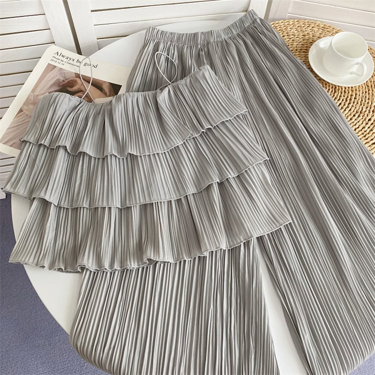 ベアトップ 5色 ストレッチウエスト ハイウエスト セットアップ 上着 垂れ感 カジュアルパンツ