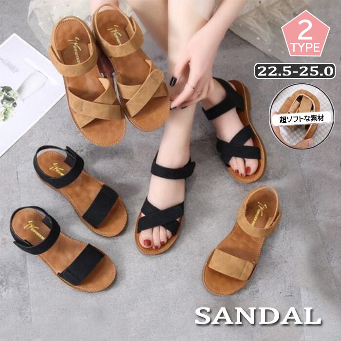 サンダル 2色 クロス ストラップサンダル ソフト オシャレ かわいい
